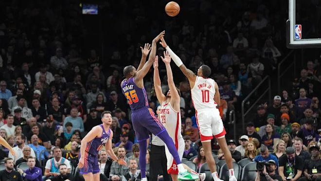 相反,火箭隊選擇了一種非常規(guī)策略:真正意義上的“談判”。約12個月前,類似操作曾幫助他們以低于頂薪的價格與中鋒申京完成續(xù)約,盡管代價是在合同最后一年加入了球員選項(杜蘭特此次續(xù)約同樣獲得球員選項,但在他職業(yè)生涯的當前階段,這一選項或能為火箭隊帶來薪資空間靈活性)。
